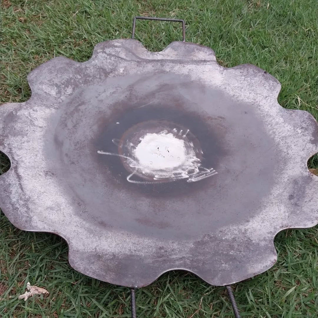 - Feito com disco de grade agrícola de 26" polegadas (aprox. 67cm)