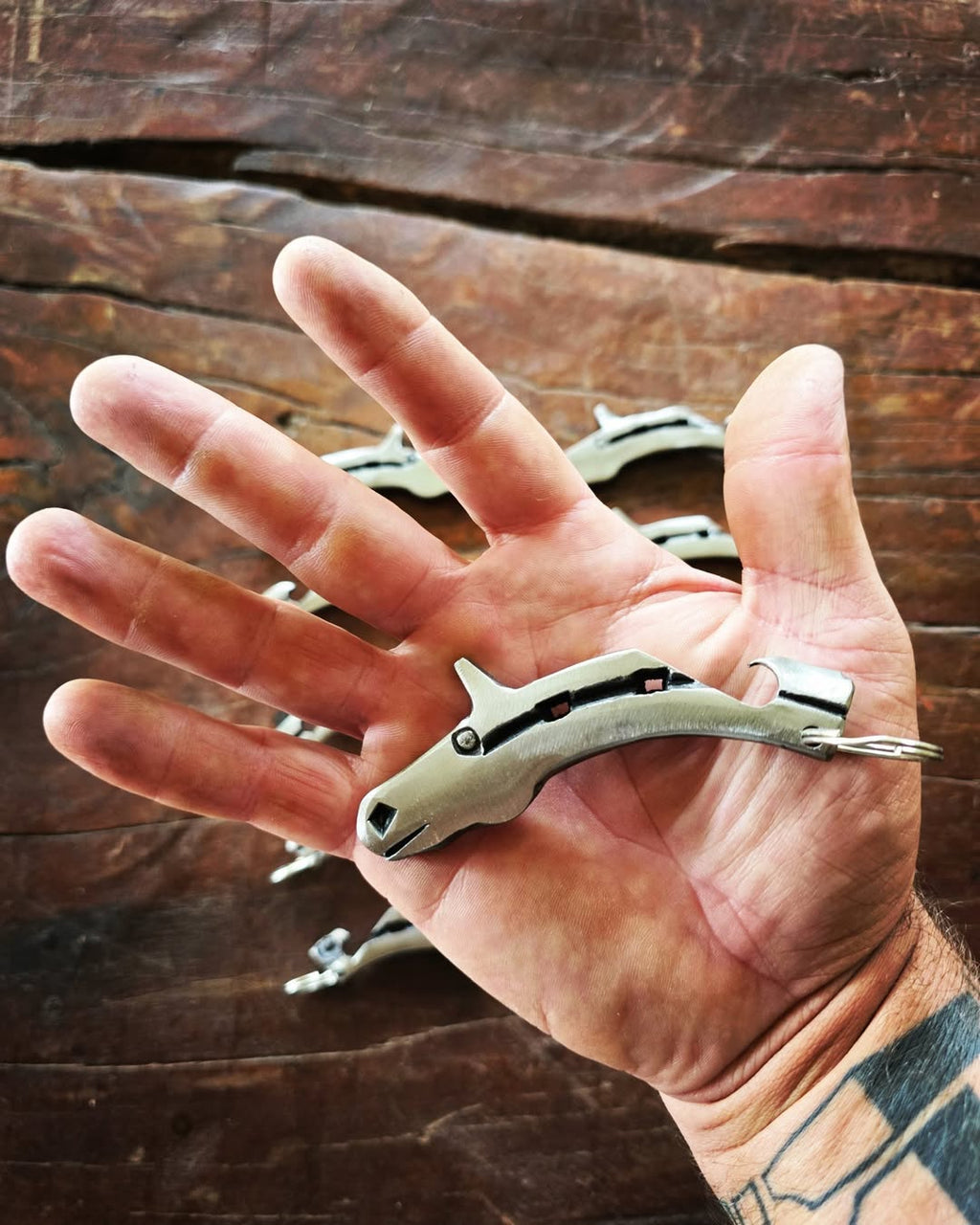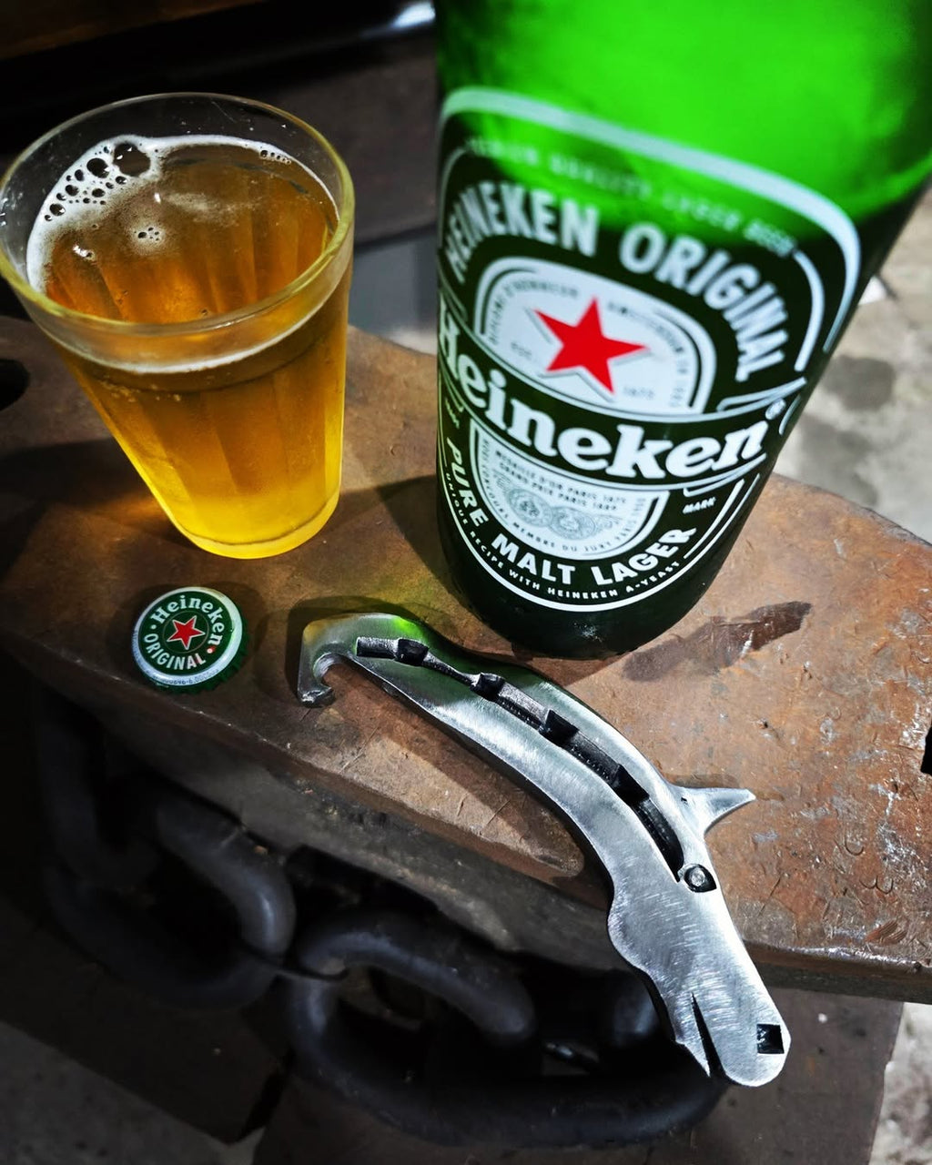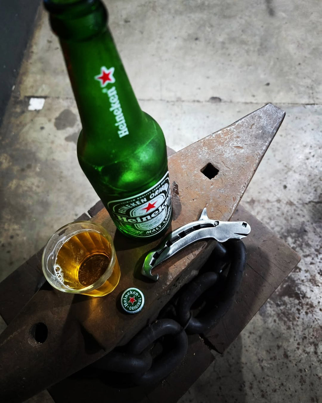Peça de bolso, robusta e com alma de oficina. Abridor de garrafas em aço, modelado no formato de cavalo. O corpo curvo oferece mais alavanca (abre em 1 movimento) e o furo traseiro permite usar como chaveiro ou pendurar na área do churrasco. Produção artesanal brasileira.