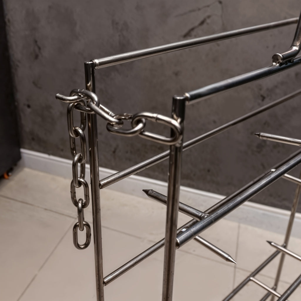 • Estaca reforçada: Base firme e segura para cravar no chão ou encaixar na churrasqueira.